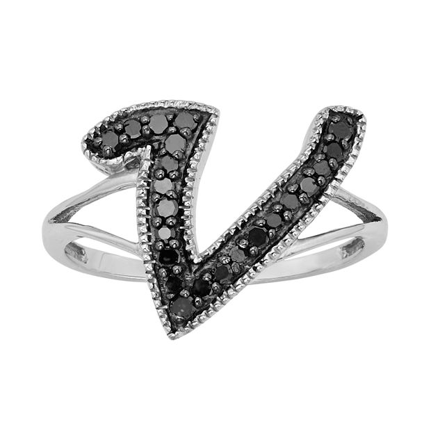 Jewelexcess Sterling Silver 1 4 Ct T W Black Diamond Initial Ring